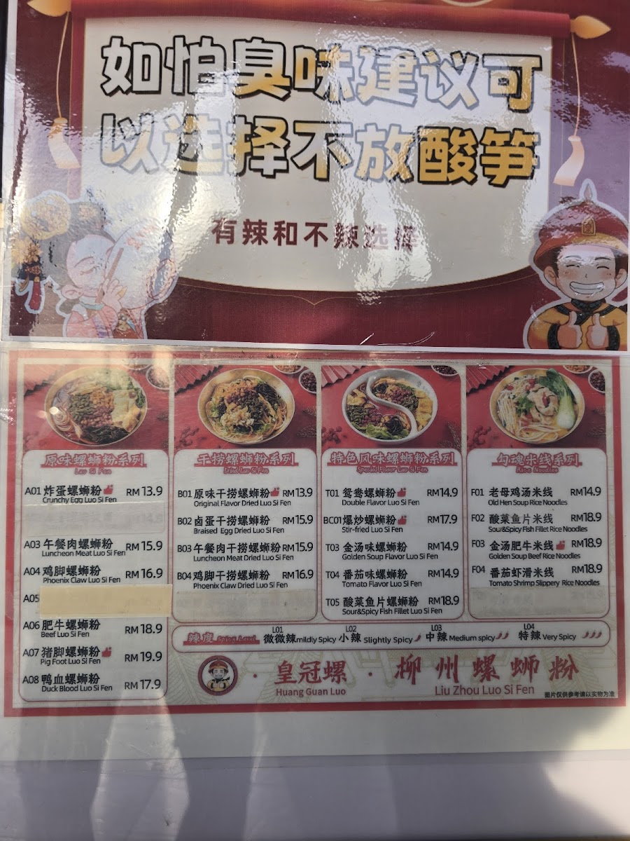 One of the standout features is the customizable spiciness of the dishes, allowing diners to tailor the heat to their preference—many reviews highlight the perfectly balanced soup. Customers appreciate the variety, as not only does it offer traditional Luo Si Fen, but it also has an array of noodle options for those less adventurous.
